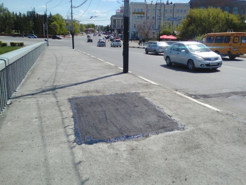 Взятки гладки, раз есть заплатка!Омичей встревожило сообщение в соцсетях о "проседающем" Юбилейном мосту. Чиновники сначала успокоили горожан на словах, заявив, что деформационный шов поперек моста всегда возникает там, где ездит много тяжелых машин.Но потом оперативно заделали треснутый асфальт.Фото: А. Зуев