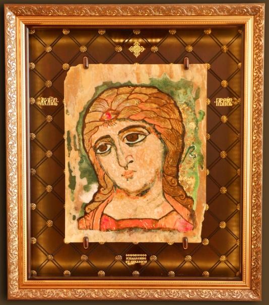 И вот на днях я зашел в Омский филиал Высшей школы народных искусств – Художественно-промышленный колледж – и был несказанно удивлен. В кабинете заместителя директора на меня смотрел своими бархатистыми миндалевидными очами Архангел Гавриил (на фото). Это был список той самой иконы новгородской школы, только она сияла свежестью красок и была написана явно не на традиционной липовой доске. Я заинтересовался техникой ее изготовления, познакомился с художником Павлом Селезневым и узнал следующее.