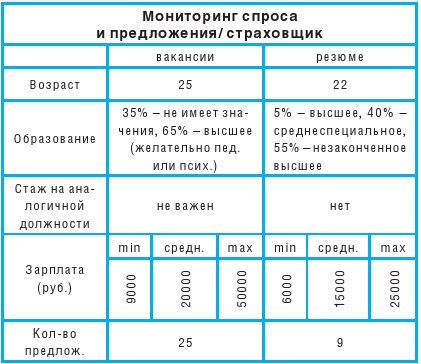 Несмотря на то, что работа страхового агента не требует специального образования и каждое агентство готовит сотрудников самостоятельно, работодатель ищет выпускников педагогических или психологических факультетов. По словам г-жи Шипициной, это объясняется тем, что к клиентам требуется психологический подход. А среднестатистический соискатель не удовлетворяет этому требованию. В 40% случаев он может похвастаться незаконченным высшим, техническим, экономическим образованием.