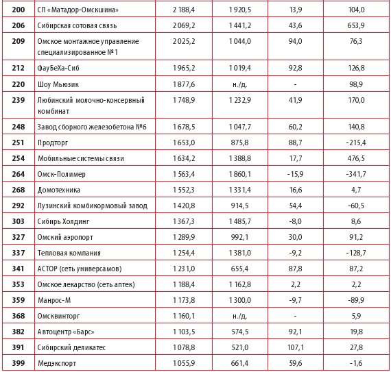 Нет наших предприятий в списке 20 наиболее прибыльных компаний, в списке 20 крупнейших энергетических компаний "Омскэнерго" (распределительная) занимает 10 место. Есть наши представители и в списке 20 наиболее динамичных компаний. "Омсквинпром" замыкает этот список, а "Омскшина" стоит на почетном пятом месте. Правда, как мы уже писали, это просто результат изменения отношений предприятия с холдингом, а не какой-то феноменальный рост. Получается, что по сравнению с развитыми субъектами региона мы отстающие, зато лидеры среди аграрных.