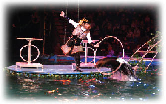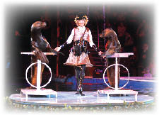 "Когда я решила уйти в цирк, меня все знакомые отговаривали: куда ты идешь - там же люди неинтеллигентные", - призналась "БК" г-жа Богомолова. Однако стенания близких ее не остановили, и до сих пор, вот уже больше десяти лет, она выходит на водную гладь вместе со своими питомцами. По словам артистки, и кошки, и морские львы - животные весьма интеллектуальные, и потому работать с ними очень приятно. У морских львов царит патриархат - на манеже работают только самки. Их сейчас две. "А самец Тобик - он и есть самец: он должен выдержать свое время", - поделилась своим пониманием полового вопроса г-жа Богомолова. На данный момент Тобик хорошо кушает (около 20 килограммов рыбы в сутки) и поддерживает своим вниманием представительниц прекрасного пола. Кстати, все три морских льва приехали к нам из Эквадора и потому чувствительны к температуре. Однако это не мешает им при случае блеснуть красотой и талантом на корпоративных вечеринках. 20-минутный номер с выездом на корпоратив обойдется любителям экзотики в 2500 долларов (чуть меньше 70 тысяч рублей). Для сведения: морские львы могут обходиться без воды три дня и, по словам дрессировщицы, не агрессивны.