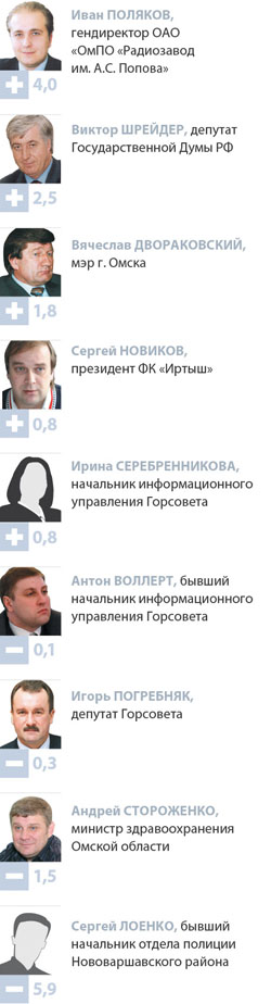 ВИНОГРАДОВ Владимир, председатель омского отделения «ОПОРЫ РОССИИ»; ГЕРЧИК Владимир, директор холдинга SIBTEX; ДОБРОВОЛЬСКИЙ Владимир, президент фонда поддержки партии «Единая Россия»; КОСТАРЕВ Сергей, профессор ОмГУПС; ЛИХАЧЕВ Александр, председатель Омского областного общества потребителей в сфере жилищно-коммунального комплекса; МАШКАРИН Михаил, декан ФГО ОмГТУ; РАБИНОВИЧ Евгений, председатель совета ООО «Омский Союз потребителей «Щит»; ТАТАРИНОВА Галина, специалист по связям с общественностью; ТИКУНОВА Зинаида, председатель Областного совета общественных организаций; ФЕДОРОВ Игорь, старший преподаватель ОмГТУ; ШАТИЛОВ Юрий, сопредседатель Омского Медиасообщества.