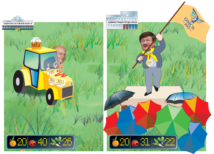 Тем временем власть продолжает куражиться по поводу подготовки к юбилею города. До праздника осталась неделя, и пришло время раздать награды за непосильную к нему подготовку. Легкая рука Виктора Ивановича уронила специально учрежденные медали на пиджаки своих заместителей, а также мэра и его замов. Любопытна формулировка вручения: «за высокие результаты в развитии экономики, производства, науки и техники, строительства, культуры и искусства, образования, здравоохранения, спорта, а также за социально значимую общественную деятельность в интересах всестороннего развития Омска, повышения авторитета города в стране и за рубежом». Трогательный междусобойчик в очередной раз прошел без учета мнения жителей города, упивающихся этими «результатами». Ну что ж, извините, что помешали вам медали прятать! Возьмите тогда ещё и помидор.