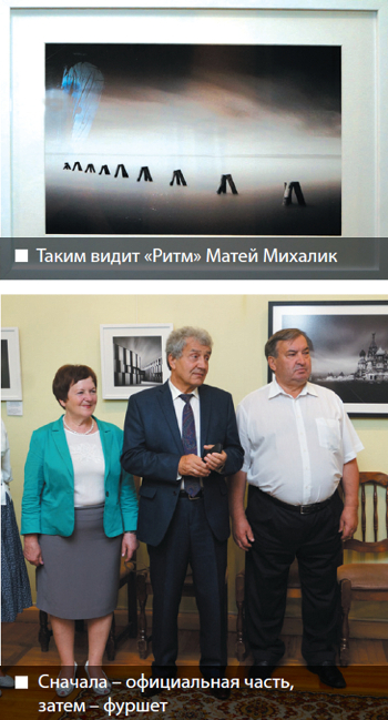 Как говорят словаки, «Зачем вода, когда есть вино?». Чтобы поддержать национальный колорит, накрыли фуршетные столы: розовое шампанское, макаруны в тон, прочие мини-десерты. Работы фотографа – 19 черно-белых фотографий – разместили по периметру двух залов. Тон этому маленькому празднику задавало трио артистов оркестра Музыкального театра. Контрабасист Алексей Петелин попробовал себя в роли гитариста, Алексей Сысоев исполнял свою партию на скрипке, а очаровательная Екатерина Туркельтауб – на кларнете.