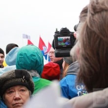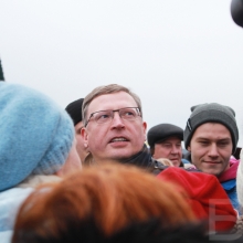 Дистанционным обращением врио губернатора не ограничился: закончив речь и поздравив омичей, он отправился в толпу, туда, где стояли студенты с флагами недавнего фестиваля. Он довольно эмоционально пообщался с молодыми людьми и попозировал для селфи.