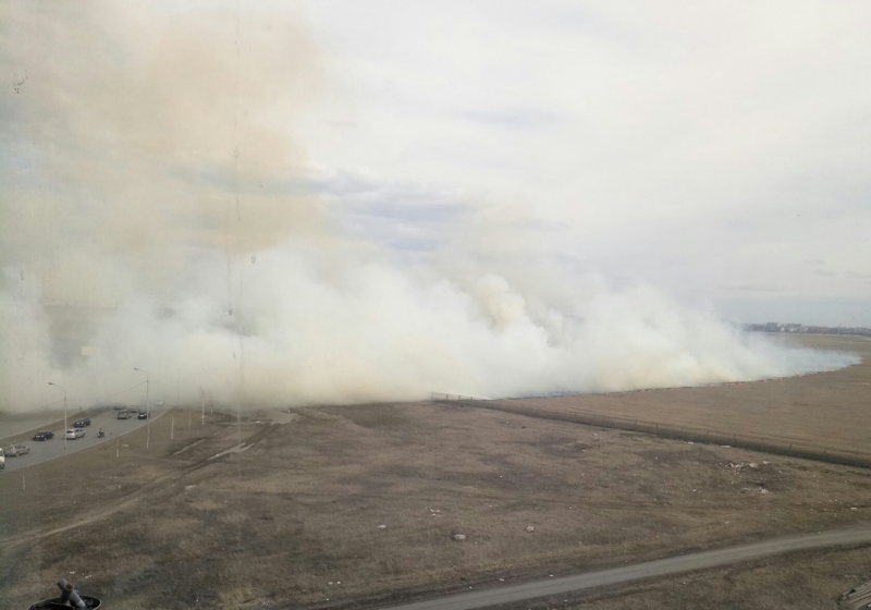 Крупный пожар вечером произошел на территории аэропорта. Дым покрыл значительную часть Левого берега. Омичи поражены размерами задымления, которое распространилось на несколько километров.