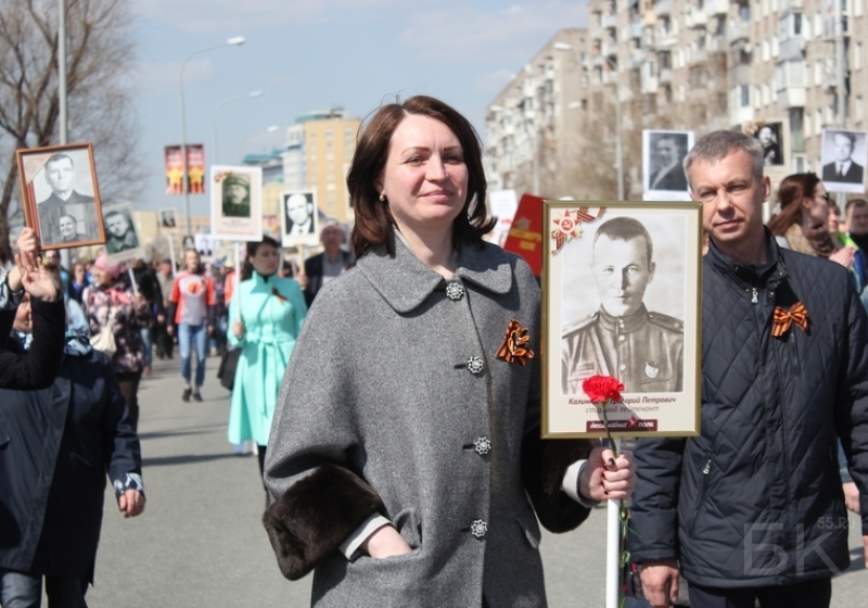 Мэр Омска Оксана Фадина участвовала в шествии с портретом деда по материнской линии Григория Петровича Калиникова. Оксана Николаевна рассказала, что ее дедушка мало говорил о войне, поэтому о его подвигах пришлось узнавать из архивов. В битве под Ржевом он возглавил атаку взвода, уничтожил немецкого офицера и трех солдат. Его ранили, но Григорий Петрович до темноты руководил своим подразделением на поле брани. За этот подвиг его наградили Орденом Красного Знамени.