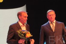Первым спортсменов поздравил врио губернатора Омской области Александр Бурков: