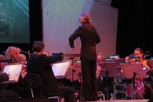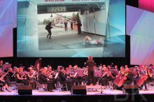 Сегодня перед собравшимися музыканты сыграли не только полным составом. Четверо исполнителей воспроизвели композицию только на ударных инструментах, пытаясь разбудить в зале – на трибуне – дух болельщиков, что у них отлично вышло.