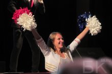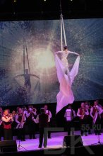 Чирлидерши сопровождали исполнение следующих четырех исполнителей своими трюками, а молодые ребята из секции спортивной гимнастики показали высочайший уровень, выступив перед спортсменами на сцене.