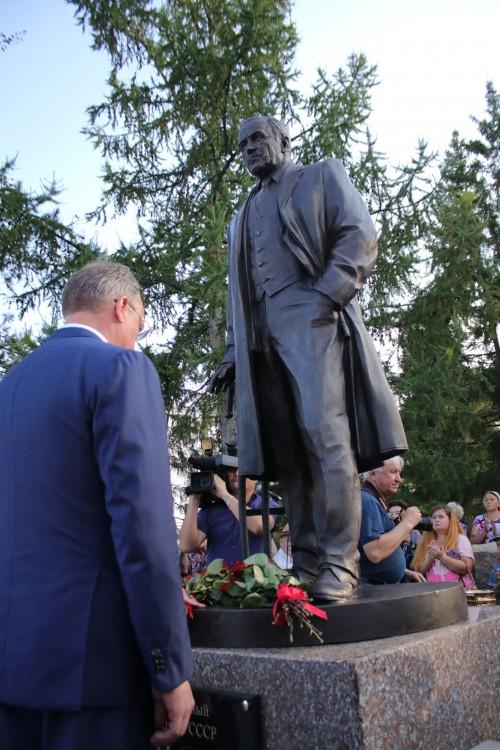 «Сегодня мы с вами открываем памятник великому человеку – Михаилу Александровичу Ульянову. Человек, который в своей жизни сыграл многие роли: он играл великих исторических героев, начиная от Цезаря, заканчивая Лениным, Сталиным, Жуковым. Но при этом он сам был великим, он нес в народ любовь, тепло, доброту, трудолюбие и уважение к своей земле. И сегодня памятник открывается не только для родных и близких, он открывается для всех потомков, для всех омичей и гостей нашего города. Для того, чтобы глядя на него люди могли вспоминать его судьбу, его дела и творчество. Читая высказывания о Михаиле Александровиче я для себя запомнил одну вещь, что у него было три принципа: первый принцип – это совесть, второй – это совесть и третий – это совесть. Это действительно был очень совестливый человек, который любил свою землю, любил своих близких и окружающих его людей. Я уже многих омичей встречал, которые со словами благодарности вспоминали его помощь. Он всегда помогал всем, кто к нему обращался. Нет того человека, которому бы он отказал. Поэтому Михаил Александрович у нас в сердцах, он в нашей памяти и он в истории нашей Омской земли и нашего большого Советского Союза. Память о Михаиле Александровиче Ульянове будет жить вечно».