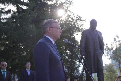 Открытие памятника началось в 18:00 с речи главы региона Александра Буркова: