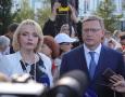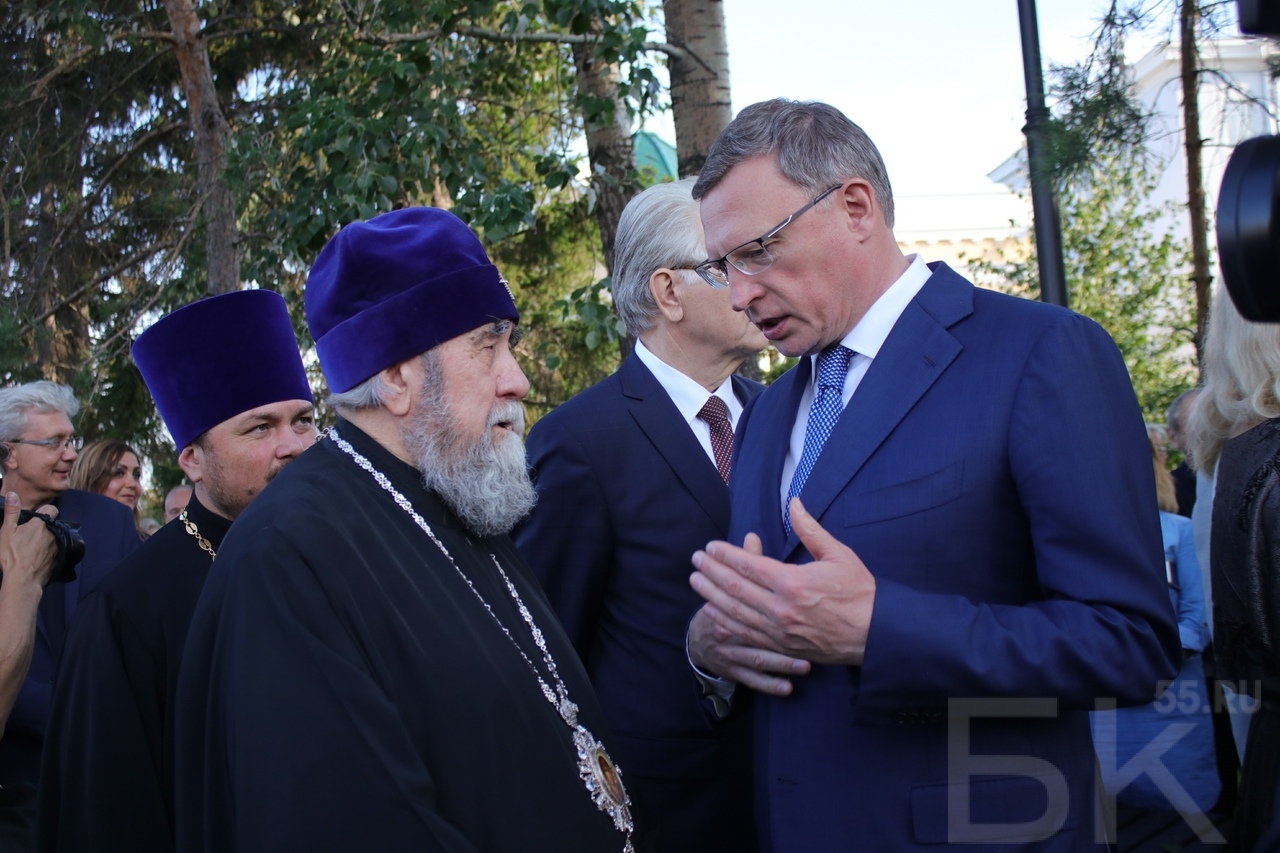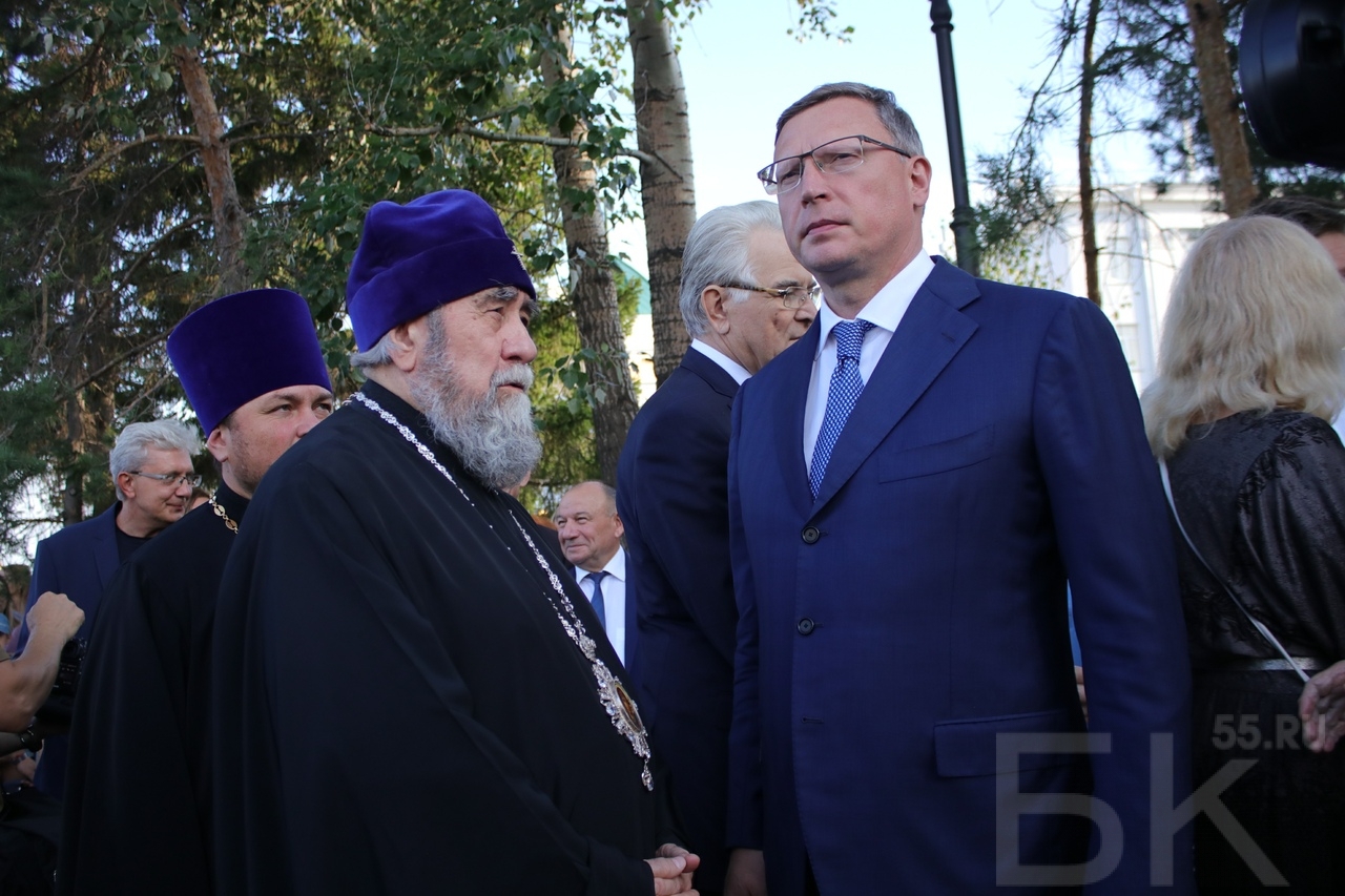 После выступления Елены Ульяновой митрополит Омский-Таврический Владимир провел освящение памятника М.А. Ульянову.