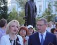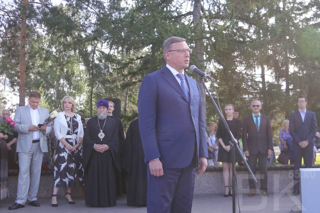 Открытие памятника началось в 18:00 с речи главы региона Александра Буркова: