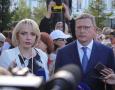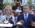 Сначала цветы возложили Елена Ульянова и Александр Бурков. Дочь артиста долго стояла у изваяния горячо любимого отца, положив на него руку. Глава региона находился рядом, опустив голову.