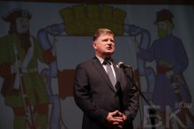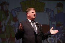 Также на сцене перед учителями держал слово спикер городского совета Владимир Корбут, который сорвал овации, пожелав педагогам «мирного неба над головой»: