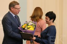 Среди награжденных была и подчиненная недавно назначенного вице-губернатором Куприянова, заместитель министра труда и соцзащиты региона Лариса Нагорная. Дама для награждения и фотосессии с губернатором даже специально принесла туфли.