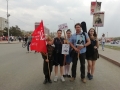 На фото члены «Омского районного общественного движения». На плакатах представлены Герои Советского Союза, уроженцы Омского района: Лаптев Михаил Яковлевич, Малиновский Радион Яковлевич, Берников Михаил Михайлович. Их именами названы улицы в Омской области.