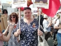 Примечательно, что красные флаги у участников тоже были, при том, что организаторы косвенно вообще выступали против их использования. Также помимо флагов был запрет на портреты Сталина и советских генералов. Таким образом, организаторы настаивали на том, чтобы акция проходила вне политики.