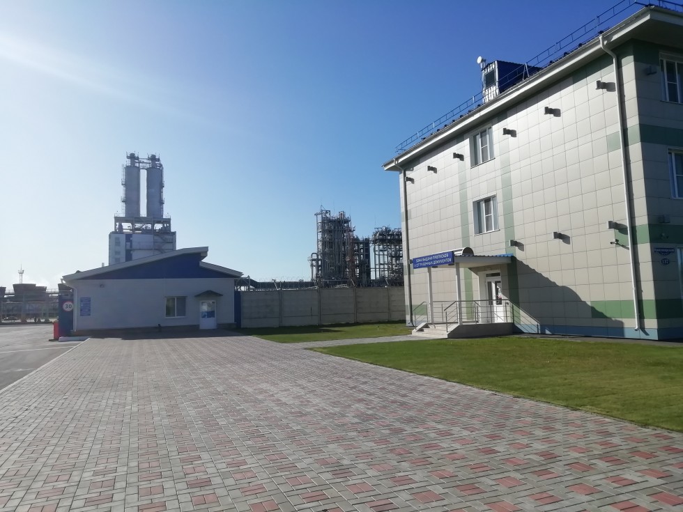 После разговора с руководителями нам устроили экскурсию по заводу. Факел уже погас — тот газ, который на момент срабатывания автоматики был в колоне разделения, уже выгорел. Сам завод — маленький. Территория всего — километр на 400 метров. По сути, весь он — это одна установка, разделенная на две очереди, с расположенными вокруг нее ремонтными и обслуживающими цехами. Везде очень чисто. В целом все выглядит очень ухоженным.