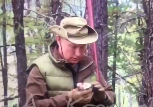 Он добавил, что вчера президент совершил прогулку по сибирской тайге в компании министра обороны Сергея Шойгу.