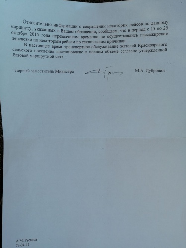 Активист, глава местного совета ветеранов Александр Паршуков позже обратился в прокуратуру и та, по суду, обязала администрацию Красноярки оборудовать остановочный пункт.