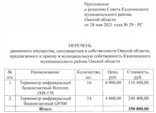 Конкретное министерство, передающее калачинцам термометры по столь удивительным ценам, в документах не указано. Это может быть как минздрав, так и министерство имущества Омской области.