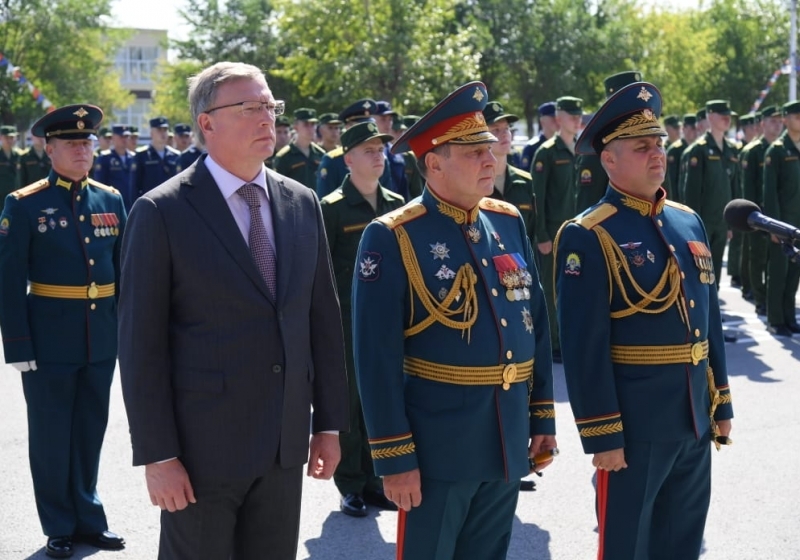 Дмитрий Булгаков прилетал в Омск в качестве заместителя министра обороны РФ 1 сентября (на фото). На плацу Омского автобронетанкового инженерного института Булгаков и губернатор Омской области Александр Бурков поздравляли курсантов и личный состав военного вуза с началом нового учебного года.
