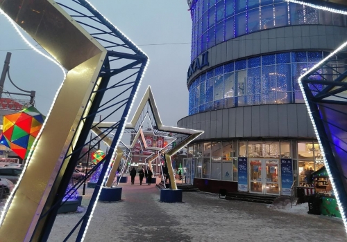 Многие крупные торговые предприятия уже преобразились к праздникам, установили елки, гирлянды, декоративный скульптуры. Так, празднично оформлены торговые комплексы «Континент», «Лента», «Фестиваль», «Метромолл», «Бауцентр», «Герцен Плаза», торговые центры «Омский», «Каскад», торгово-офисный комплекс «Флагман», дом быта «На Герцена», универмаг «Дружный мир» и многие другие. Украшаются также промышленные предприятия, коммерческие организации, учреждения социальной сферы.