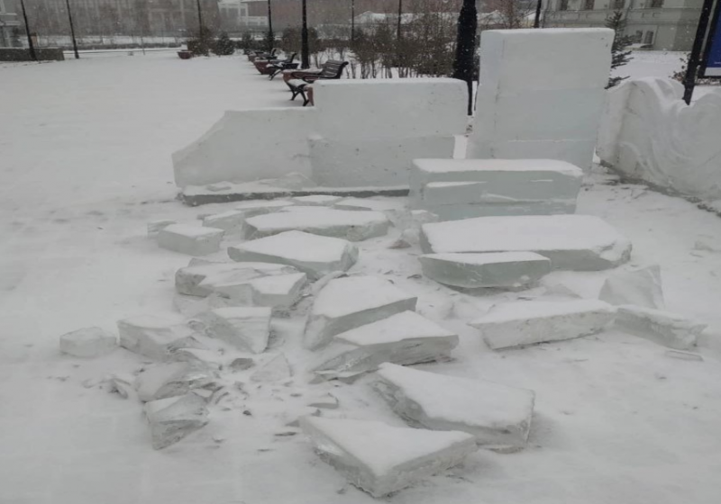 В центре Омска снова поработали неизвестные хулиганы. На улице Музейная вандалы разломали ледяные подиумы, подготовленные для скульптур.