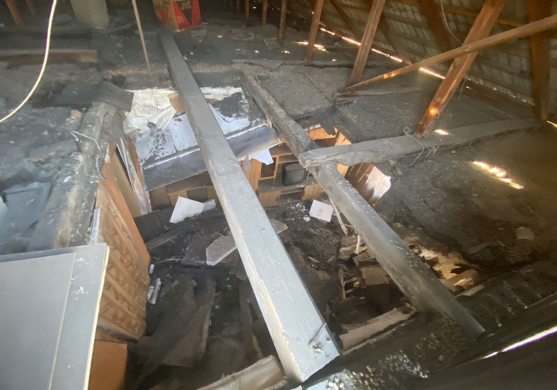 Как уже сообщал «БК55», вчера, 5 апреля, в одной из квартир этого барака обвалился потолок.