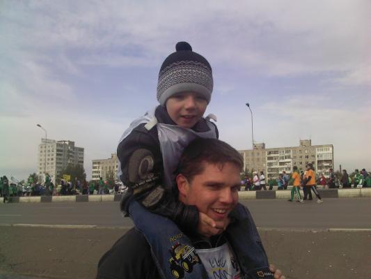 Как признаются участники мероприятия, сюда они пришли не победить, а поучаствовать. Сопричастность к большому событий очень важна, отмечает отец двоих детей Илья Никитин. Вся большая семья Никитиных сегодня отложила поездку на дачу и приехала на Соборную площадь, чтобы пробежать два с половиной километра.