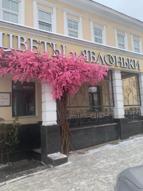 Однако флористика — это не только про букеты и подарки. Такую формулу часто продвигают так называемые цветочные «массмаркеты». Любой уважающий себя мастер «цветочных дел» обязательно продемонстрирует клиенту «товар лицом». О качестве предлагаемых услуг и заботе о покупателях говорит оформление каждого салона «ЦВЕТОВ У ЯБЛОНЬКИ». Например, входная группа главного «исторического» филиала на Ленина встречает посетителей ключевой композицией прошедшей «Флоры-2023» — «Древом жизни» в миниатюре.