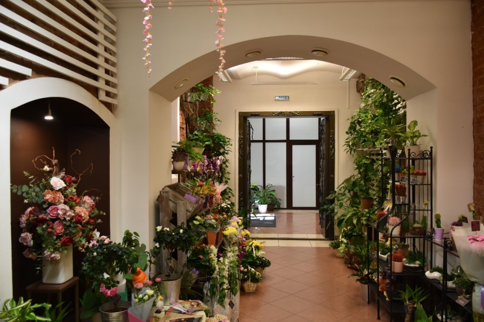 Однако флористика — это не только про букеты и подарки. Такую формулу часто продвигают так называемые цветочные «массмаркеты». Любой уважающий себя мастер «цветочных дел» обязательно продемонстрирует клиенту «товар лицом». О качестве предлагаемых услуг и заботе о покупателях говорит оформление каждого салона «ЦВЕТОВ У ЯБЛОНЬКИ». Например, входная группа главного «исторического» филиала на Ленина встречает посетителей ключевой композицией прошедшей «Флоры-2023» — «Древом жизни» в миниатюре.
