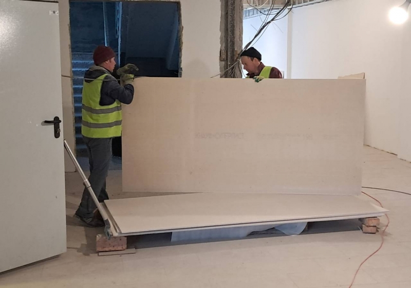 Сейчас, как сообщается, уже завершаются установка новых окон, выравнивание стен и потолков, устройство перегородок и коробов из гипсокартона, финишная отделка поверхностей, в том числе кладка напольной плитки.