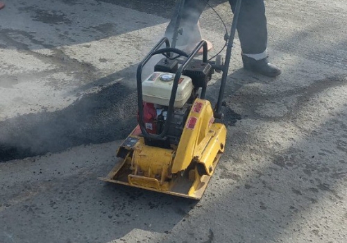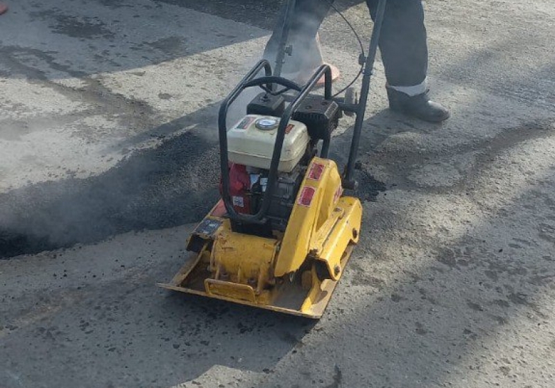Ремонт дорожного полотна проводится холодным асфальтом.