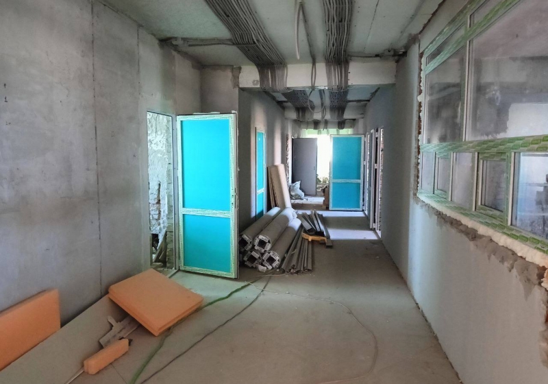 Работы начались в апреле 2024 года. Первый этап ремонтных работ был завершен в июле прошлого года. В августе 2024 года начался второй этап. Отделочные работы на втором этаже выполнены на 90%, на первом этаже на 35%.