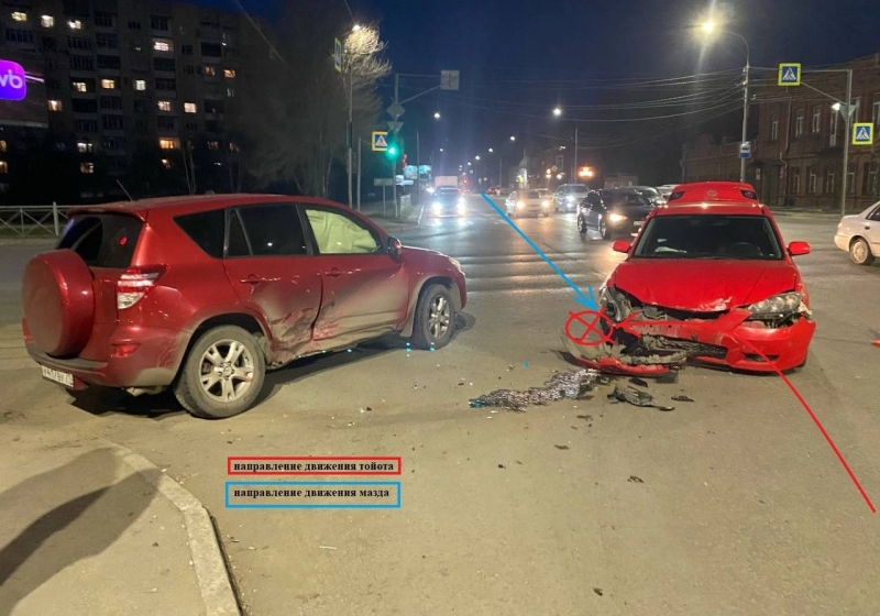 Вчера, 13 апреля, на одном из перекрестков Центрального округа Омска из-за нарушения правил дорожного движения столкнулись «Тойота» и «Мазда».
