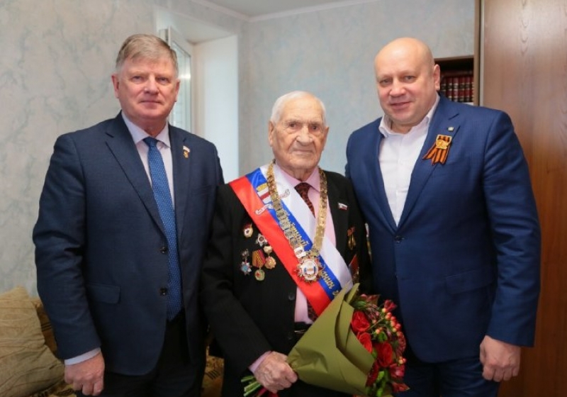 Сегодня первые лица города вручили удостоверение, нагрудный знак и другие атрибуты звания «Почетный гражданин города Омска» участнику Великой Отечественной войны Дмитрию Алексеевичу Мелехину.