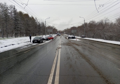 Утром 18 апреля в районе дома № 2 по пр. Мира произошло столкновение пяти легковых автомобилей.