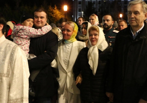Так, губернатор Виталий Хоценко прибыл в храм вместе с семьей.