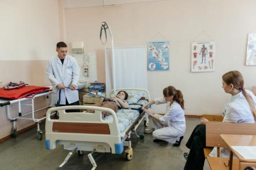В Омском медицинском колледже продолжается насыщенная программа практических занятий для студентов Стахановского медицинского колледжа, рассказали в региональном Минздраве.