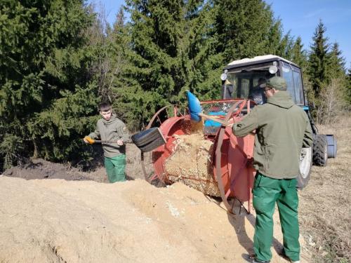 Так, специалисты освежили почву, высеяв 20 кг семян сосны обыкновенной и 5 кг семян ели сибирской. Используемая при этом специальная сеялка обеспечивает равномерное распределение посевного материала по дну борозд. Это значительно повышает эффективность посева.