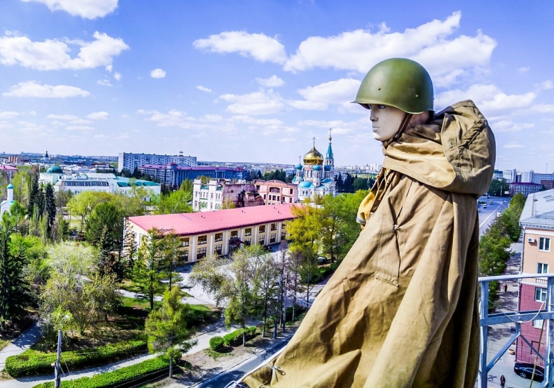 Главный пожарный символ Омской области Василий в преддверии 80-летия Дня Победы сменил одежду огнеборца на форму советского солдата.