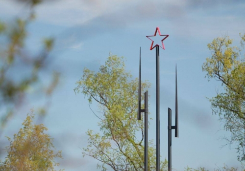 По словам автора им, задумка композиции — звезда, разорванная взрывом у основания, с винтовками, устремлёнными вверх. На лучах звезды размещены фамилии красноярцев, ушедших на фронт в 1941–1945 годах. Эта идея является личной историей автора, чьи предки, как и многие жители региона, приняли участие в войне.