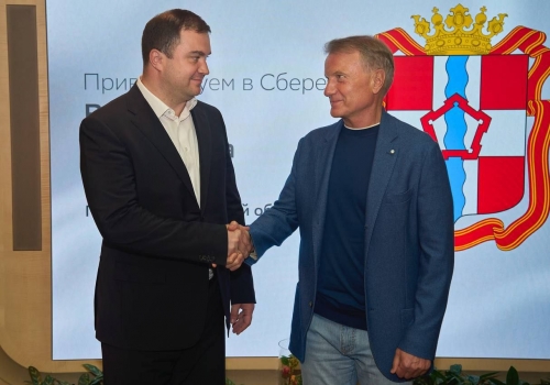 Председатель правления Сбера Герман Греф сегодня встретился с главой Омского региона Виталием Хоценко. Они обменялись мнениями по проектам, которые запланировали к реализации в нашем городе во время поездки команды Сбера осенью прошлого года, а также открытие в Омске кампуса «Школы 21» и благоустройство города.