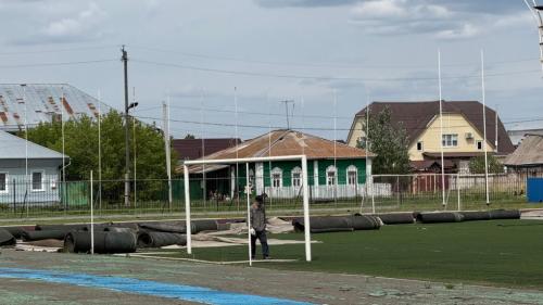 Главная арена Исилькуля в эти дни переживает масштабное обновление. Специалисты демонтируют старое покрытие, на территорию завозятся строительные материалы для ремонта поля.