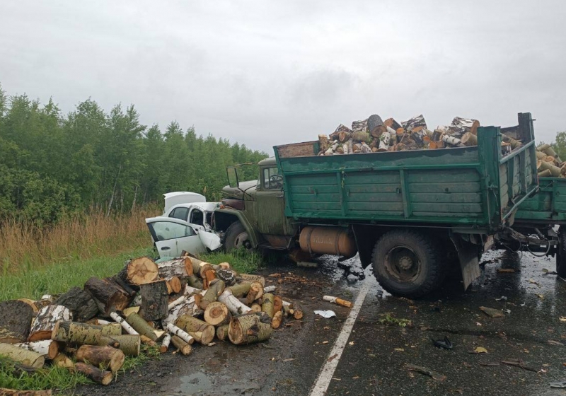 Сегодня вечером в районе 170 км автодороги Омск-Тара водитель автомобиля «Рено» выехал на полосу для встречного движения, где допустил столкновение с грузовым груженым автомобилем ЗИЛ.