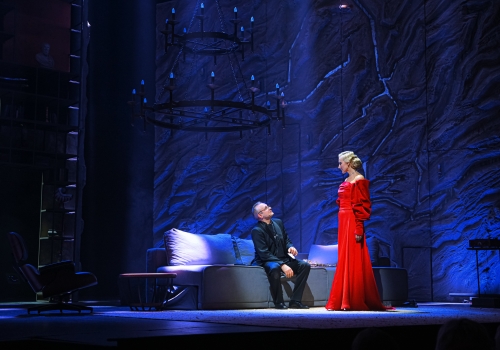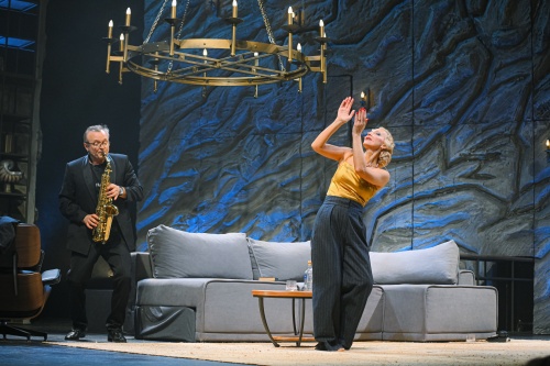 Более 20-ти лет Марту и Джорджа связывают отношения «любовь-ненависть», находящиеся между жестокостью и нежностью, диким одиночеством вдвоем и мучительной зависимостью друг от друга. Возможно, такие душевные противоречия выражают внутренние конфликты. Анна Ходюн и Александр Гончарук точно передают состояние душевной неустойчивости и дуальность характеров своих героев. Уже в начале спектакля Джордж, погруженный в полумрак, находится наедине со своими мыслями. Он всегда будет уходить в себя после вспышек гнева, вызванных на почве ссоры с Мартой: то пронзительно заиграет одинокое соло на саксофоне, то процитирует стихотворение О. Мандельштама «В самом себе, как змей таясь…», в котором зазвучит тема самопознания, утраты и стремления к более высокому состоянию души. В такой отстраненности Джорджа скрывается не только одиночество и чувство трагизма, но и любовь к своей жене. Его глубинное воспоминание-вспышка вызовет образ Марты. Перед ним предстанет Она — идеал жены и красоты в огненно-красном платье. Ария будет сопровождать ее короткий, но такой запоминающийся выход. Безмолвная и нежная Марта — это тот образ, который несмотря ни на что не дает погибнуть их любви. Но правда их реальной жизни иная: Марта изначально кажется той самой женой, унижающей, отпускающей язвительные остроты в те минуты, когда отрывается от бокала. Но за этой маской скрывается несчастная женщина. Именно одиночество порождает это душевное противоречие «ненавижу и люблю» Марты и Джорджа.