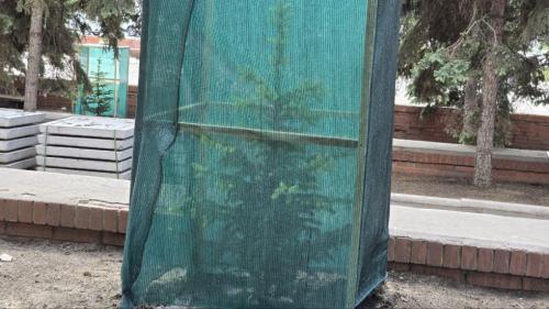 Сегодня на месте вырубленных деревьев высадили молодые, ухоженные ели. Сейчас они укрыты от палящего солнца.